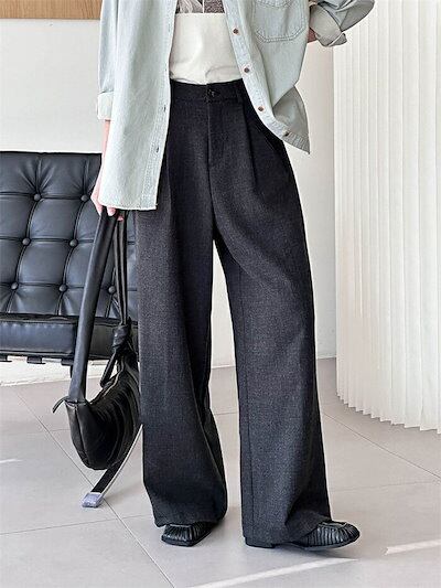 ストレートパンツ レディース ハイウエスト パンツ ワイド ワイドパンツ ロングパンツ 春夏 ストレート ボトムス ゆったり ワイドパンツ ロング丈 セミワイド ボリューム タック ポケット 美脚 タ