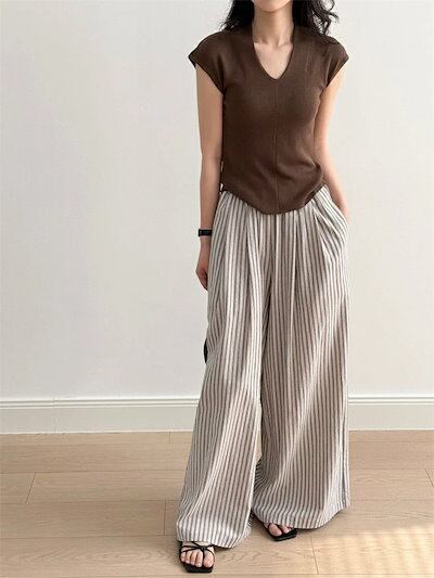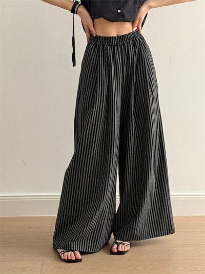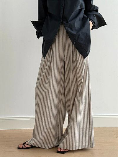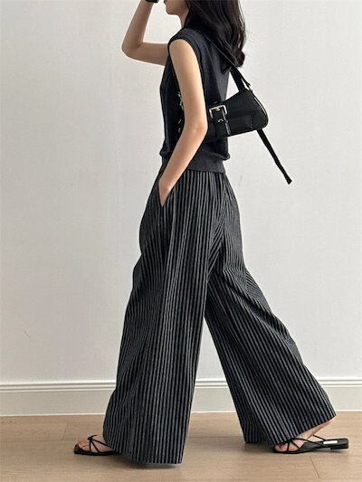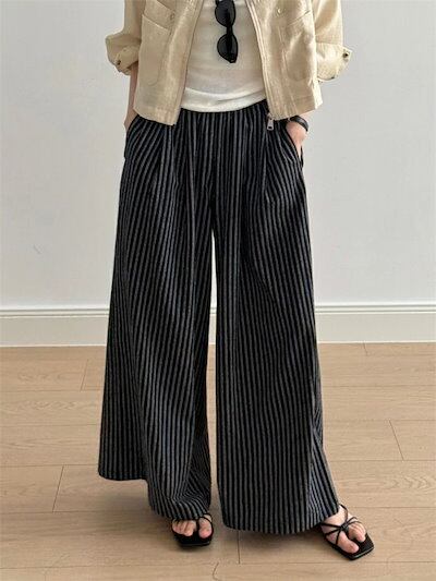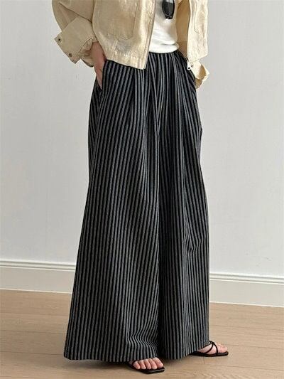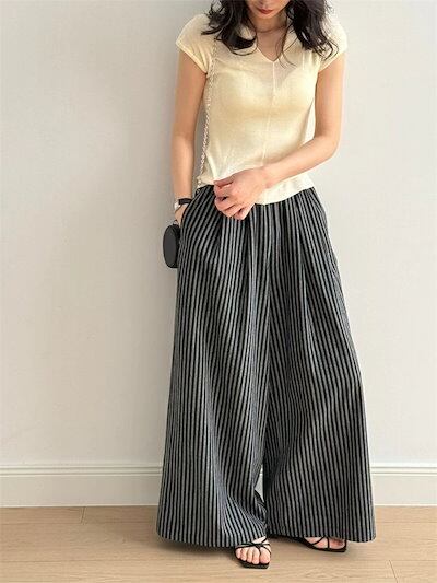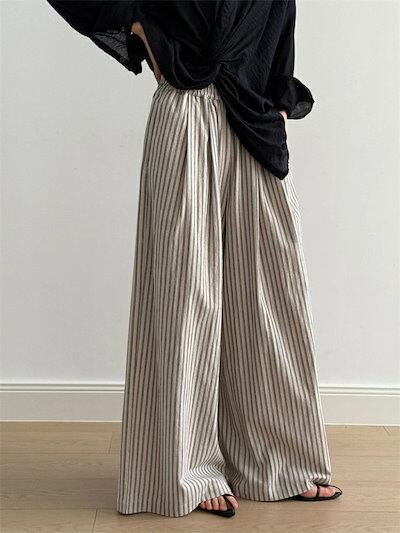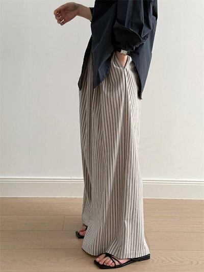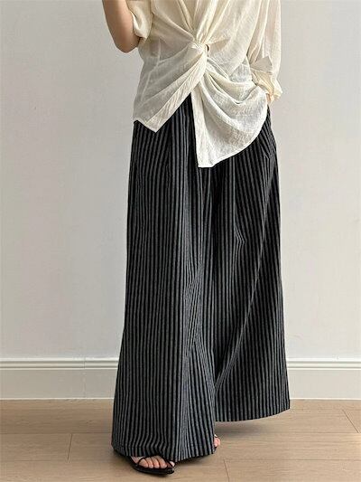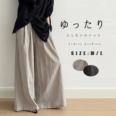 ワイドパンツ レディース 春夏 ロング丈 パンツ ガウチョパンツ ストライプ柄 フレアパンツ チノパン ゆったり ストライプ柄パンツ スラックス 長ズボン 涼しげ カジュアル ロングパンツ ウエストゴ
