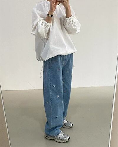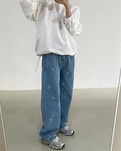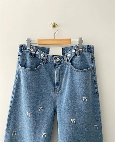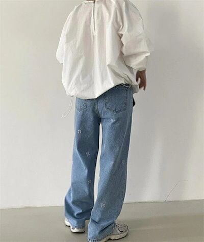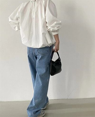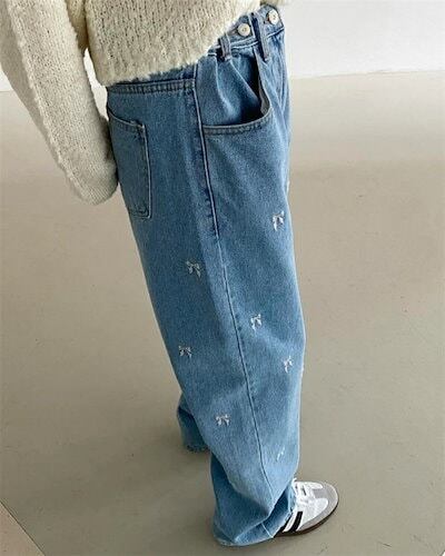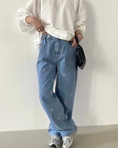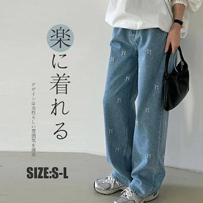 デニムパンツ ストレートパンツ レディース ロングパンツ 長ズボン デニム ボトムス パンツ ロング丈 ガウチョパンツ 刺繍 ワイドパンツ ストレート ハイウエスト 体型カバー 着痩せ 落ち感 カジュ