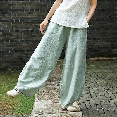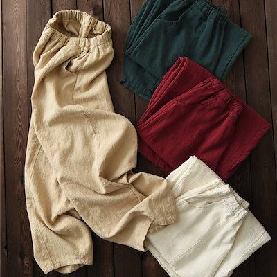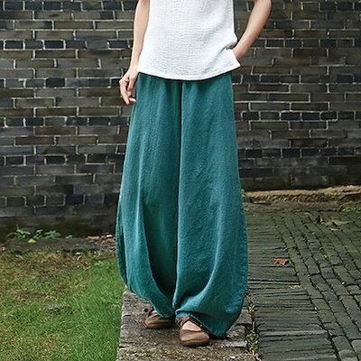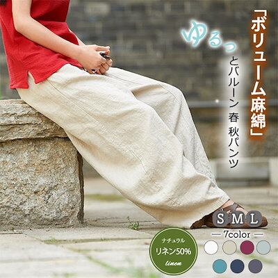 麻パンツ リネン50% 厚手 レディース 秋 冬 春 ワイドパンツ バルーンパンツ リネンパンツ麻綿 コクーン 高評価 ゆったりシルエット ダークグレー ホワイト ワイン グリーン ティール