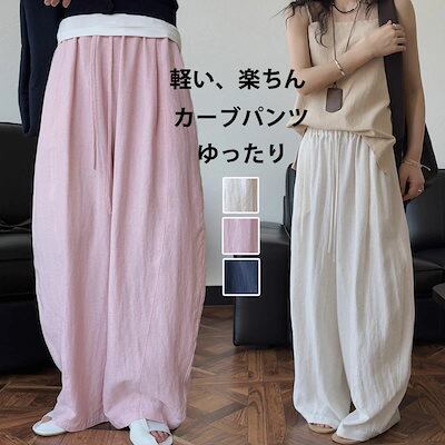 カーブパンツ バルーンパンツ ワイド レディース 大きいサイズ 春 夏 ワイドパンツ パンツ ウエストゴム ゆったり 体型カバー 下半身 ロングパンツ 無地 コクーンパンツ ボトムス 長ズボン イージ