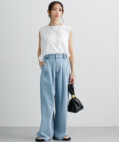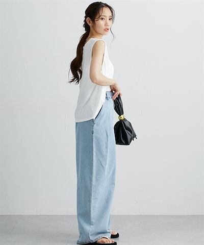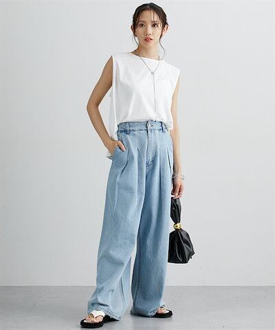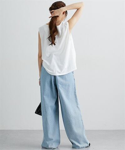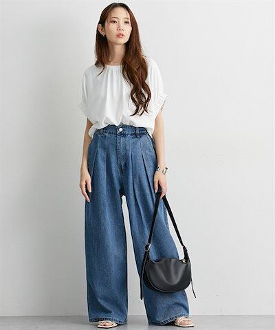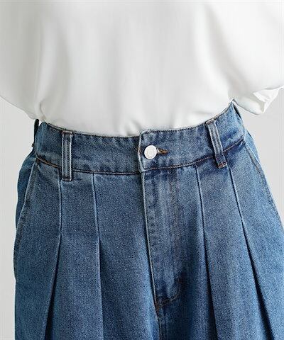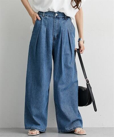 ニッセンロングパンツ デニムタックバギーパンツ