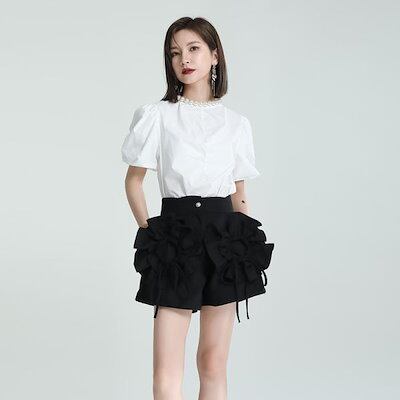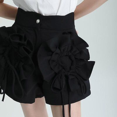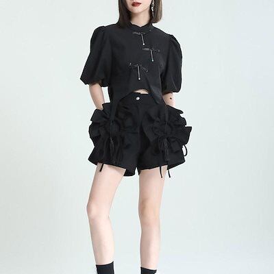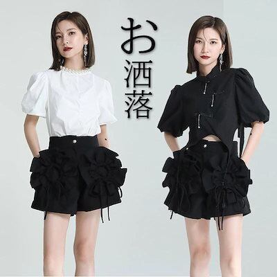 ハーフパンツレディース夏薄ボトムス膝丈短パン半ズボンフレアラフハイウエストお洒落