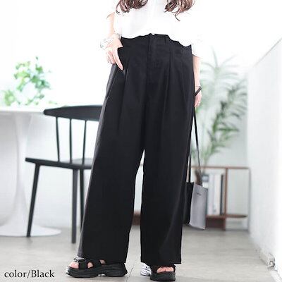 ゴールドジャパン大きいサイズ レディース パンツ ズボン ストレッチツイルタックセミワイドパンツ ロングパンツ ワイドパンツ ロング ワイド タック ポケット ウエストゴム ストレッチ 伸縮 無地 夏新作 夏服 秋服