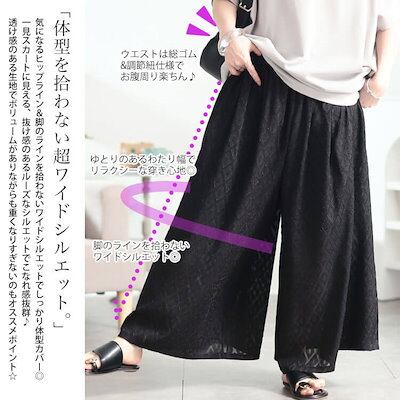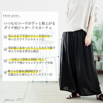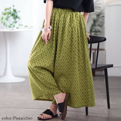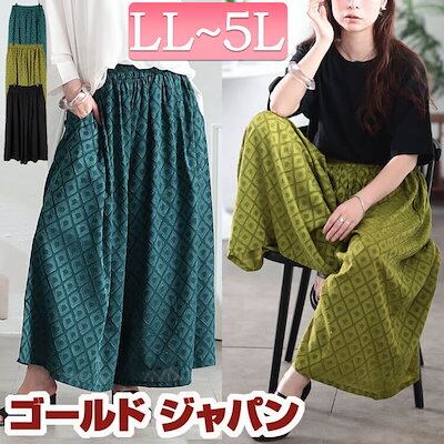 ゴールドジャパン大きいサイズ レディース パンツ ズボン ダイヤ柄ジャガードスカーチョ ボトムス ワイドパンツ スカーチョ ガウチョ ロング ワイド ダイヤ柄 ジャガード ポケット ウエストゴム 夏新作 夏服 秋服