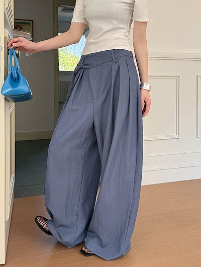 ワイドタックパンツ パンツ レディース ボトムス 無地 ロング ワイドパンツ タックパンツ スカート風 レーヨン混 ゆったり シンプル きれいめ スタイルアップ ボリューム 長ズボン 大きめ 細見え
