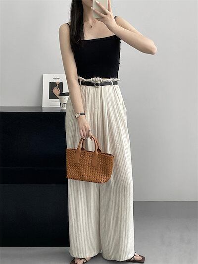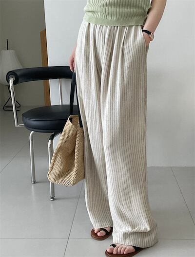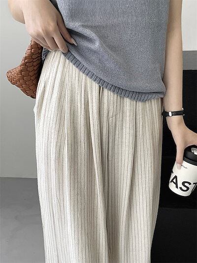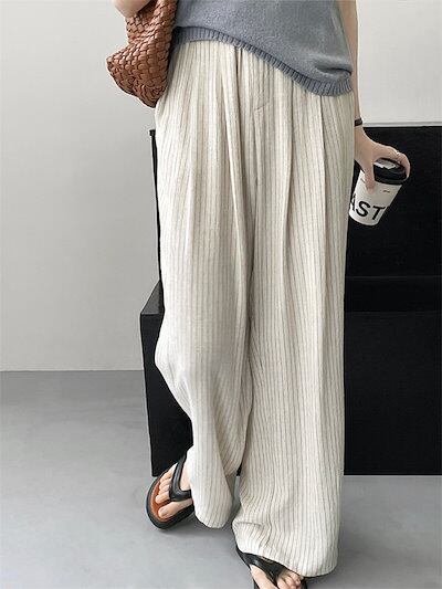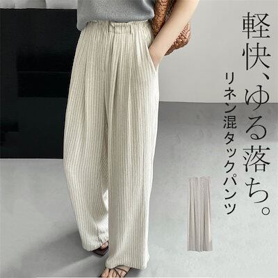 ワイドパンツ 麻 綿麻 リネン 薄手 涼しい レディース ボトム パンツ ワイド ガウチョ ガチョウパンツ ズボン ロング タック ロングパンツ ハイウエスト ポケット付き きれいめ 普