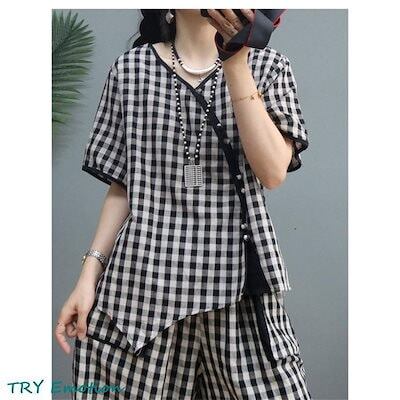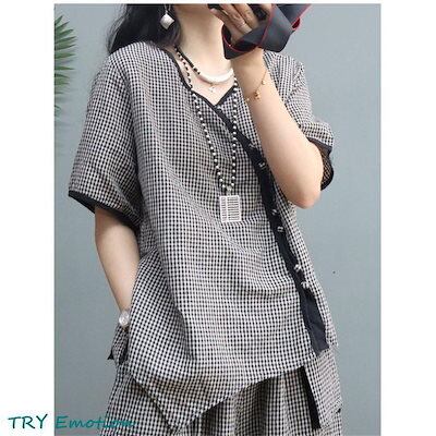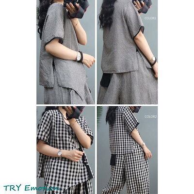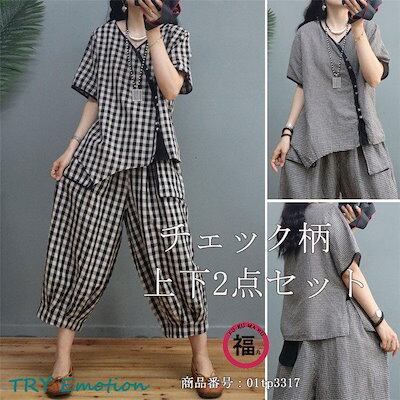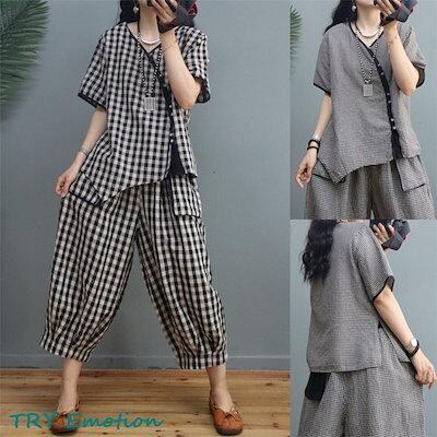 セットアップ レディース 夏 パンツセット 上下セット 2点セット トップス シャツ 半袖 夏 ズボン パンツ パンツ ショート丈 チェック柄