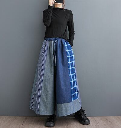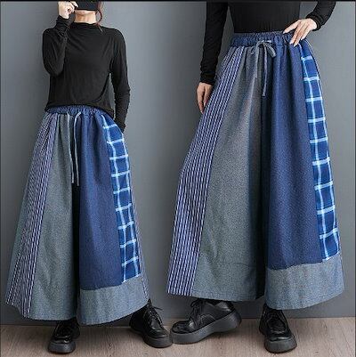 15日間のみ ロングパンツ デニムパンツ ワイドパンツ チェック柄 ボーダー柄 シンプル カジュアル お出かけ レディース【大きいサイズ レディース 春夏 下着 ボトムス ストレート スキニー ショ