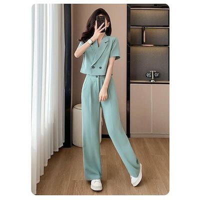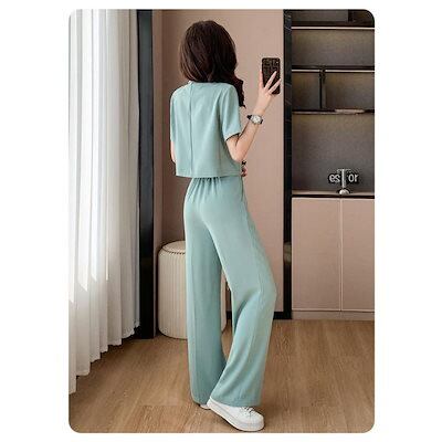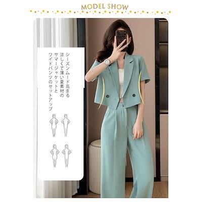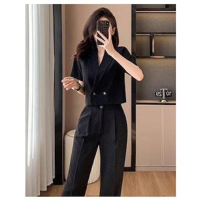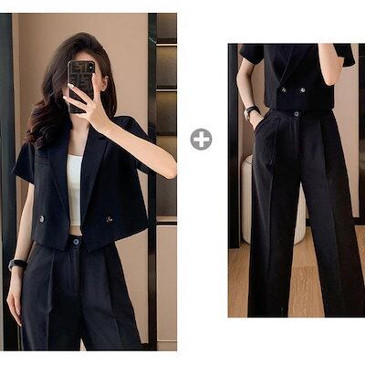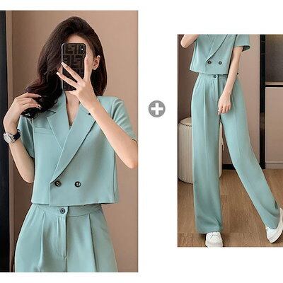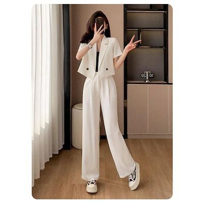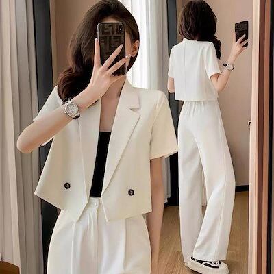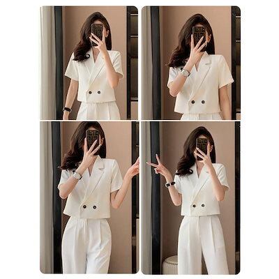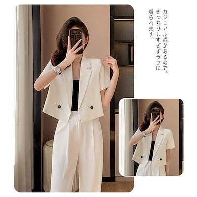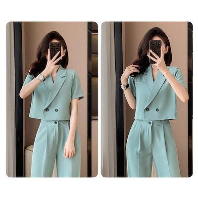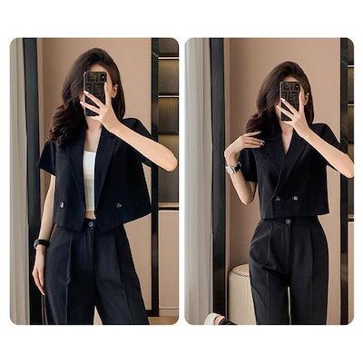 【今月限りのアクティビティ】【出荷が迅速である】2点セット セットアップ ジャケット ショート 半袖 サマージャケット ワイドパンツ 長ズボン レディース きれいめ トップス ゆったり ママスーツ ク