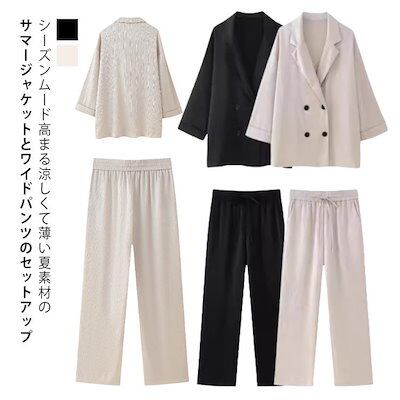 【今月限りのアクティビティ】【出荷が迅速である】セットアップ 半袖 サマージャケット ジャケット ショート ワイドパンツ 長ズボン レディース きれいめ 2点セット トップス ゆったり ママスーツ ク