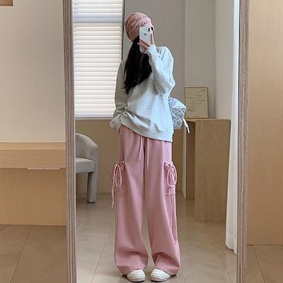 2025 春新作 ロングパンツ レディース スウェットパンツ ノーマルタイプ パンツ ワイドパンツ 体型カバー 着痩せ ゆったり 韓国ファッション