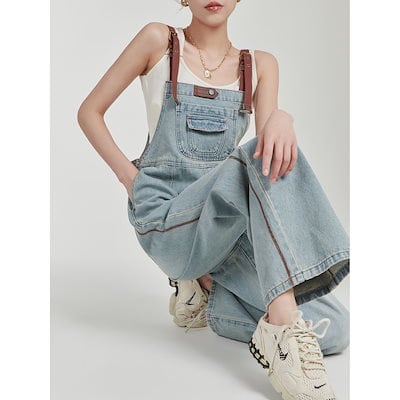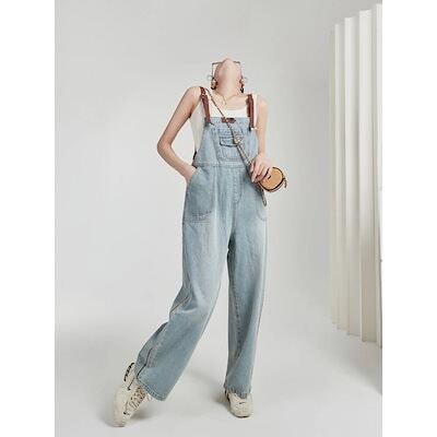 サロペット 韓国ファッション ゆったり オーバーオール 着痩せ 若見え オールインワンパンツ 流行り ワイドパンツ ハイウエスト ジーンズ レディース ズボン