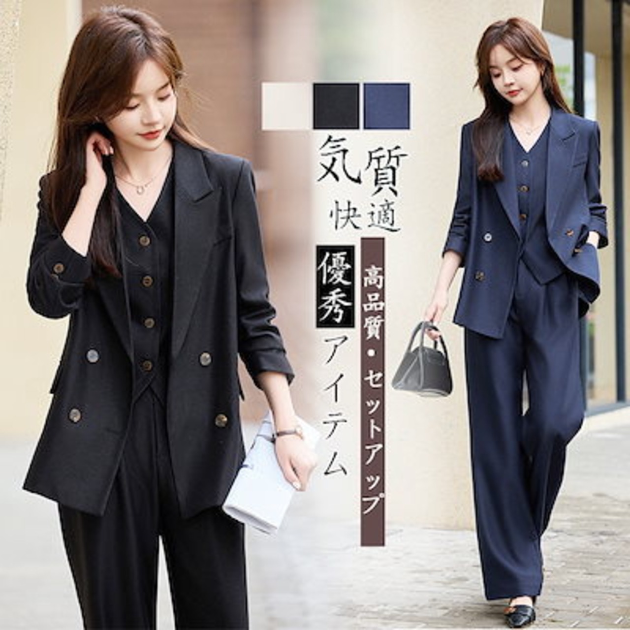 初春 3点セット レディース スーツセットアップ 気質 ビジネススーツ 通勤 トップス+ベスト+パンツ 入園式 入学式 卒園式 高級感 スーツ レディース