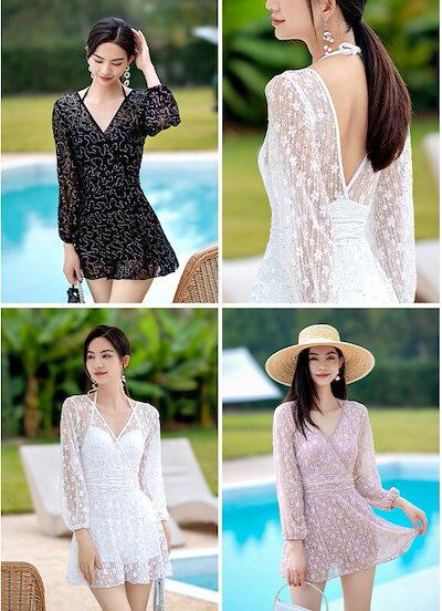 水着 レディース ガールズ スイムウェア ミズギ 盛れる 韓国風 レディース水着 ワンピース パット付き 可愛い水着 長袖 セクシー 連体 オールインワン水着 ビキニ 体型カバー タンキニ 女性 学生