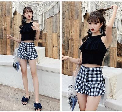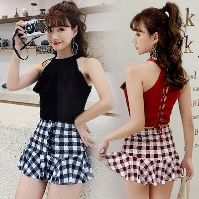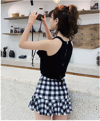 水着 レディース 体型カバー 露出控え ビスチェ レディース水着 タンキニ セパレート オトナ女子 みずぎ 韓国ファッション チェック柄 小胸も安心 海 プール リゾート 旅行