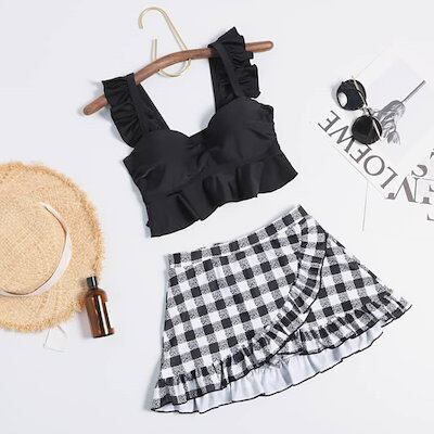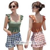 韓国 水着 体型カバー レディース 露出控えめ タンキニ 水着 セパレート 学生 チェック レディース水着 タンキニ 可愛い みずぎ ファッション 小胸も安心 海 プール リゾート 旅行