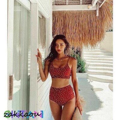ドット レディース ビキニ 2点セット 韓国風 ハイウエスト 谷間 ママ 水着 小胸 バックレス 温泉 着痩せ 海水浴 砂浜 リゾート 20代30代40代 女の子 水着 レディース 可愛い 大きいサイ