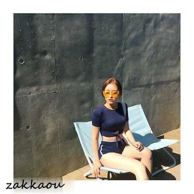 ビキニ水着レディース 夏 ビキニ2点セット水着 体型カバー 韓国風 ハイウエスト 半袖 配色水着 小胸バンドゥビキニ セパレート 可愛い スイムウェア ママ水着 女の子 水着 レディース 可愛い 大き