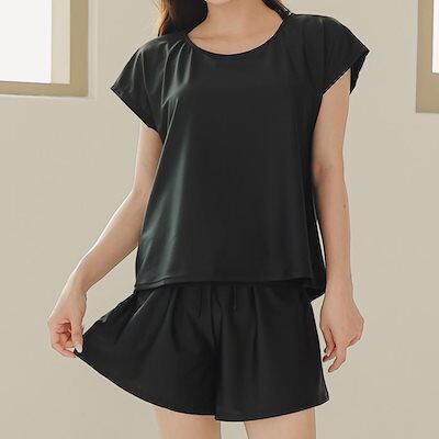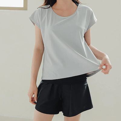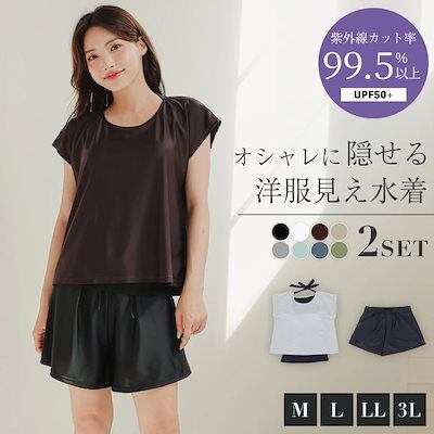 水着 レディース 体型カバー 大きいサイズ 半袖ラッシュガード ショートパンツ 2点セット 黒 白 30代 40代 50代 60代 UPF50+ 女の子 水着 レディース 可愛い 大きいサイズ 大人用