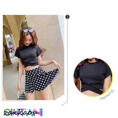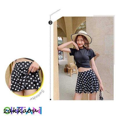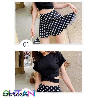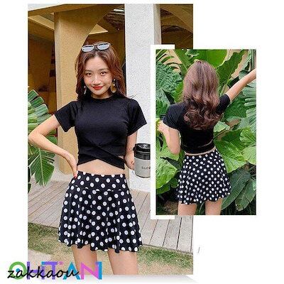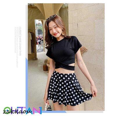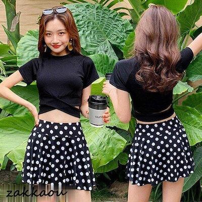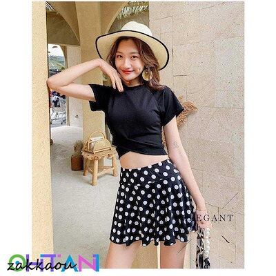 水着2点セット レディース 体型カバー水着 セパレート 半袖 ドット柄スカート ビキニ 小胸バンドゥ 40代 オシャレ韓国風 可愛い スイムウェア ママ水着 学生 女の子 水着 レディース 可愛い 大