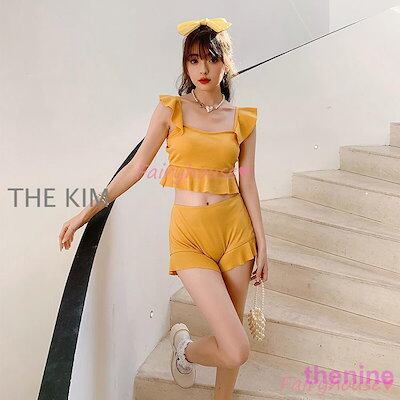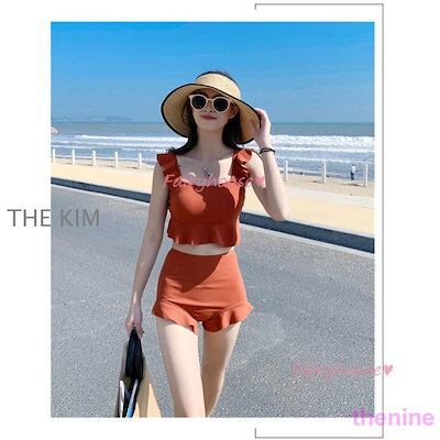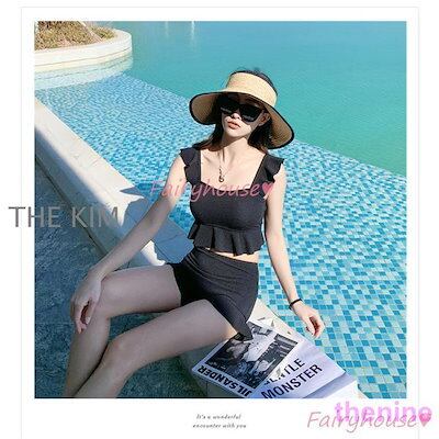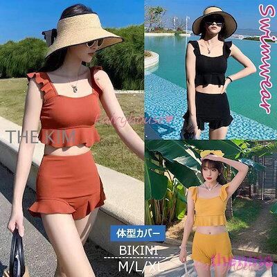 ビキニ水着レディース 夏 ビキニ2点セット水着 体型カバー 韓国風 ハイウエスト 黒フレア ショットパンツ 水着 小胸バンドゥビキニセパレート 40代 女の子 水着 レディース 可愛い 大きいサイズ
