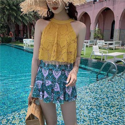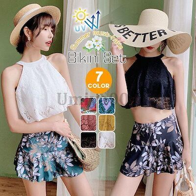 数量限定! 水着 レディース 体型カバー 2点セット ビキニ 上下セット パッド付き 小胸 盛れる 温泉 プール 海 夏 ママ水着 UVカット 紫外線対策 海水浴 女の子 水着 レディース 可愛い 大