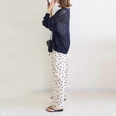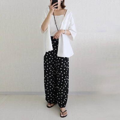 ワイドパンツ レディース 春 夏 ドット柄 ボトムス ロング丈 パンツ ガウチョパンツ ガウチョ ロングパンツ 水玉柄 きれいめ 大きいサイズ ウエストゴム 涼しい 楽ちん ゆったり ドット 着?せ