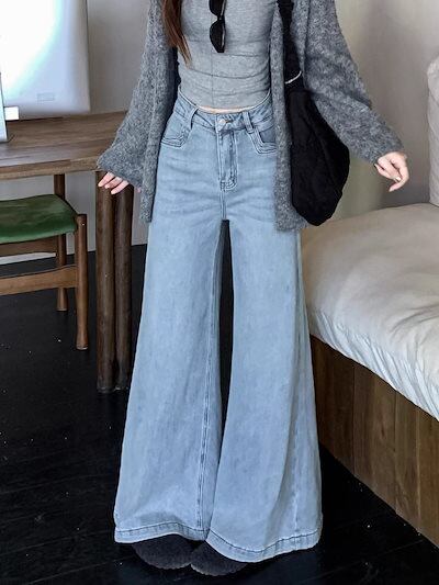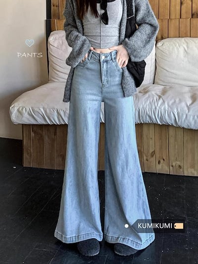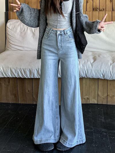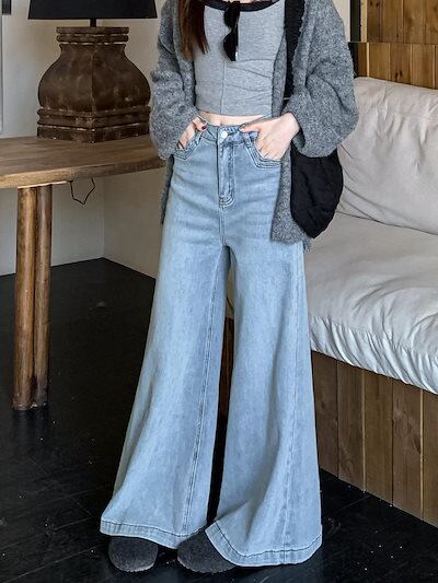 2025春夏 デニムパンツ ボトムス ハイウエスト ジーンズ K-POP ストリート系ファッション系韓国風ファッションウェア練習ジーンズ シルエット加工ゆったり レディースカジュアル型メンズライク衣装