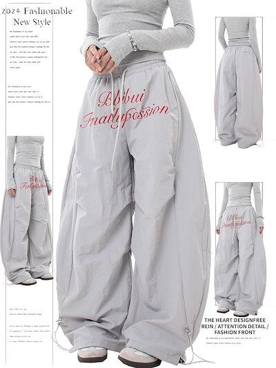 2025春夏 ウエストゴム ハイウエストカーゴパンツ ボトムスK-POP 衣装 パンツベイカーパンツストレートゆったりルーズ 韓国カジュアルスポーティーメンズライクレディースファッション