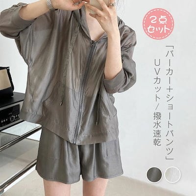 ラッシュガード セットアップ レディース 上下セット UVカット パーカー 長袖 ショートパンツ サーフパンツ 紫外線対策 日焼け防止 女性用 大人 女の子 ママ ジップアップ ラッシュパーカー フー