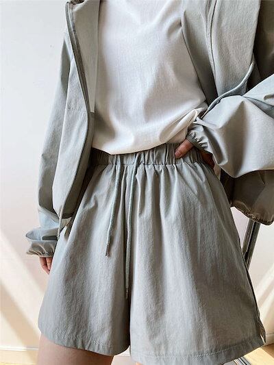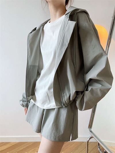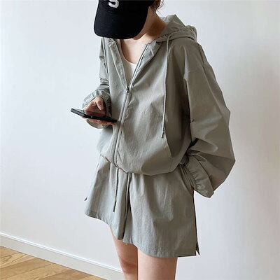 ラッシュガード セットアップ パーカーセットアップ レディース UV対策 紫外線対策 UVカット パンツ オーバーサイズ トップス ジップアップ ショートパンツ 無地 薄手 アウト ボトムス トップス