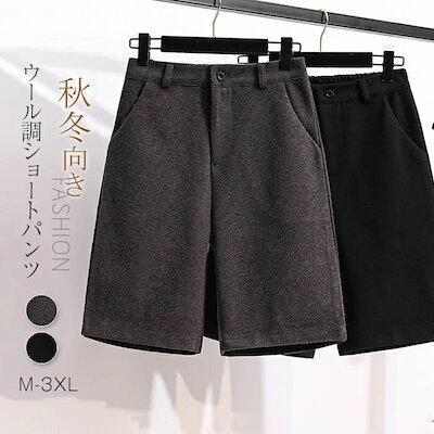 ウール調 ショートパンツ 秋冬 レディース ワイド パンツ きれいめ 女性 無地 スカーチョ ウェストゴム ショート丈 ハーフパンツ キュロット キレイめ かわいい 黒 グレー ショーパン 重ね着 大
