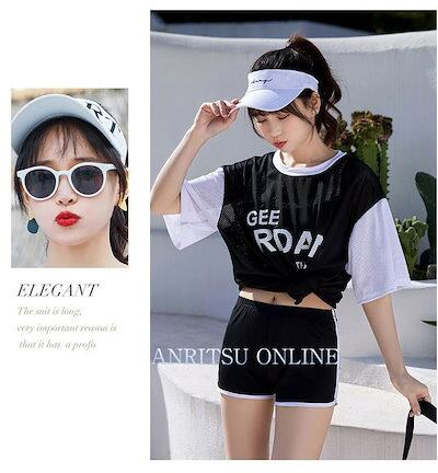 短納期 水着 3点セット 体型カバー 露出控え 中学生 高校生 レディース 韓国 女の子 大きいサイズ かわいい ラッシュガード ショートパンツ タンクトップ セパレート セットアップ おしゃれ ガー