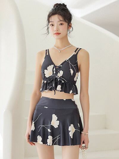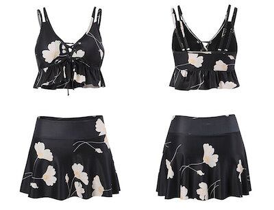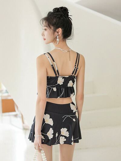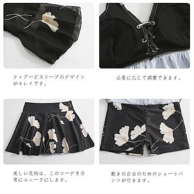 3点セット 黒 新作 水着 露出控え 夏 温泉 レディース 体型カバー ビキニ ショートパンツ一体型 スカート お洒落 おしゃれ キレイ かわいい セクシー おしゃれ ビキニ水着 ファション タンキニ