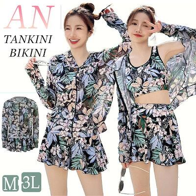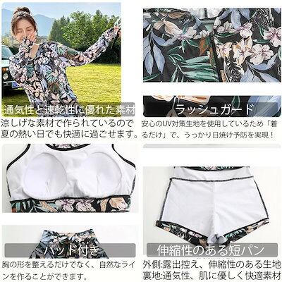 花柄 水着 3点セット 体型カバー 露出控え 中学生 高校生 レディース 日焼け止め セパレート 韓国 大学生 女の子 大きいサイズ ラッシュガード スカート ショートパンツ セットアップ おしゃれ