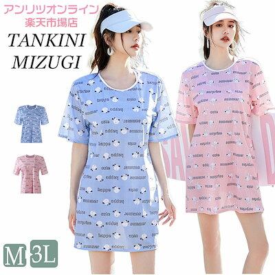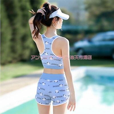 レディース 水着 露出控え 体型カバー 大きいサイズ 可愛い ロング丈 キャラクター カバーアップ タンクトップス ショートパンツ 3点セット タンキニ 韓国 高校生 女の子 ビキニ 大学生 プー