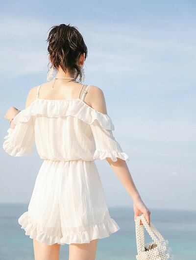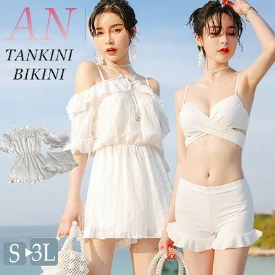 白 ホワイト 水着 体型カバー 露出控え 中学生 高校生 レディース 3点セット 韓国 大学生 女の子 大きいサイズ ラッシュガード ショートパンツ タンクトップ フィットネス セパレート セットアッ