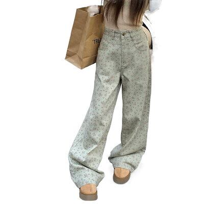 大きいサイズのアメリカ式高街砕花ジーンズ女性春秋のデザイン感が小さい
