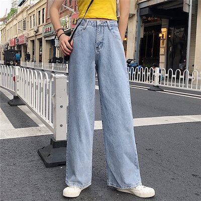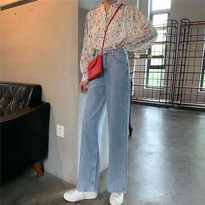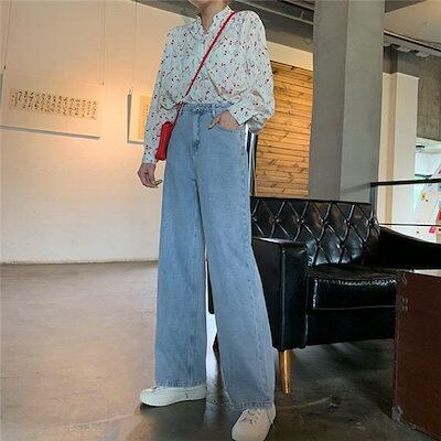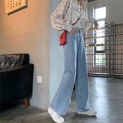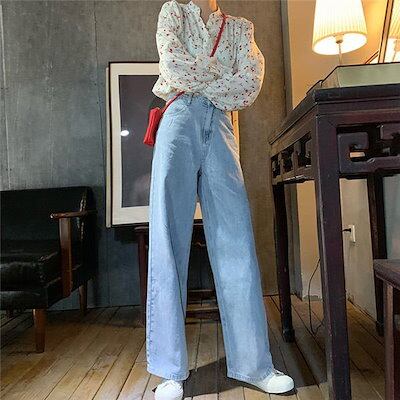クラシカル ハイウエスト 大人 ワイドストレート デニム レディース ジーンズ ゆったり シルエット