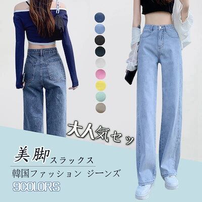 脚長効果!9colorsデニム韓国ファッション大人気美脚ジーンズ四節 適用 着痩せ 脚長効果 デニムひんやりボトムス レディース 美尻 ジーンズひんやりボトムス
