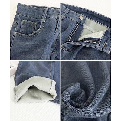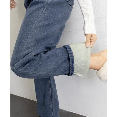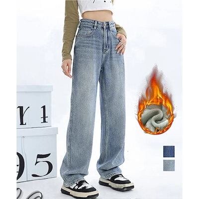 工ガ割-裏起毛デニムパンツストレートデニム裏ボア デニムパンツ レディース ジーンズ