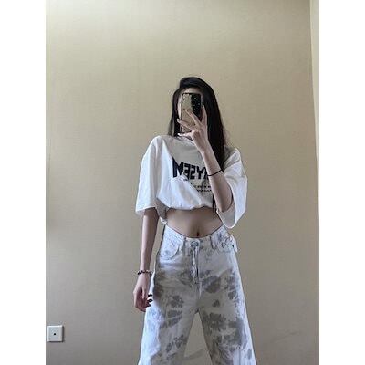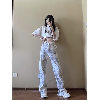 アメリカの背の高いジーンズのレトロな染めズボンinsゆるいストレート迷彩工装ズボンの工装長