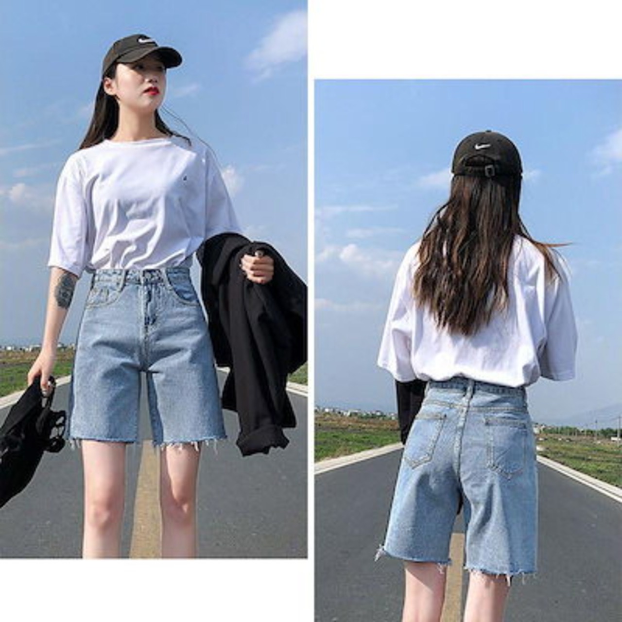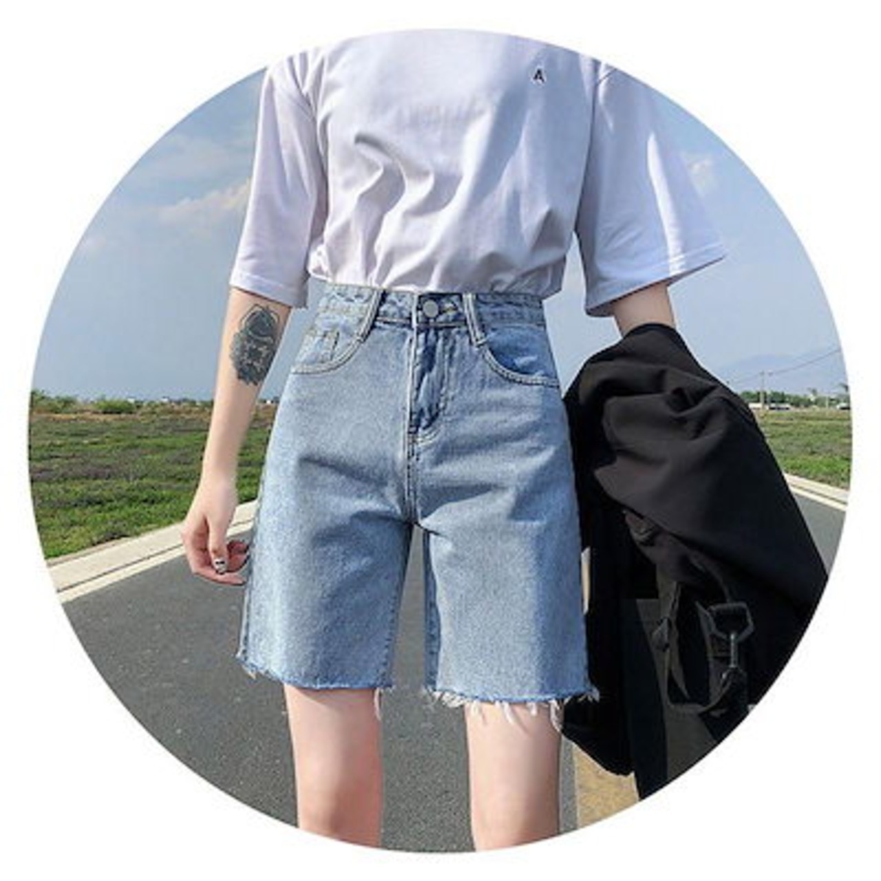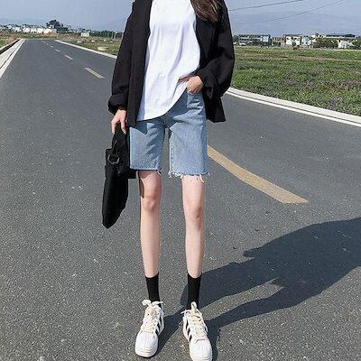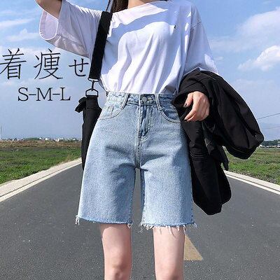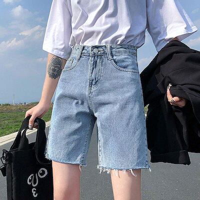 デニムパンツ五分丈レディースハーフパンツワイドパンツウエストショートパンツジーパン半ズボン女性用ジーンズ