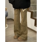 工装アメリカ復古ジーンズ新型水洗工装ズボンゆるい男女直筒設計レジャーズボン