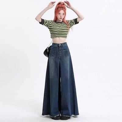 2025新作 おしゃれ 流行り パンツ ハイウエスト ワイドパンツ ジーンズ レディース レトロ ゆったり ズボン スラックスパンツ スキニーパンツ