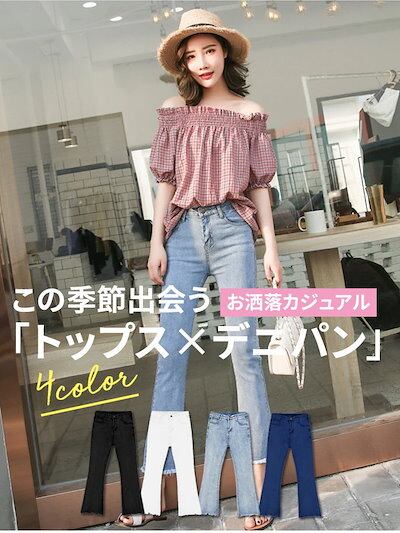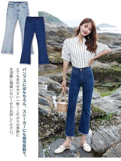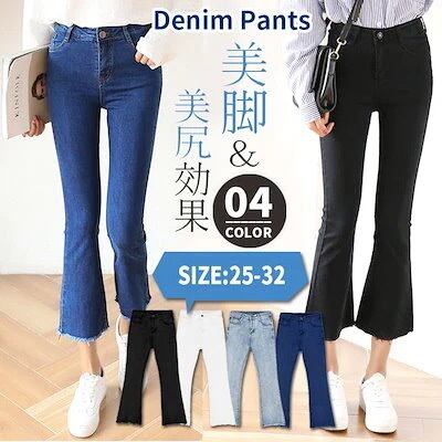 魔法の脚デニムパンツレディーススキニーフレアパンツ韓国ファッションフィット感デニム