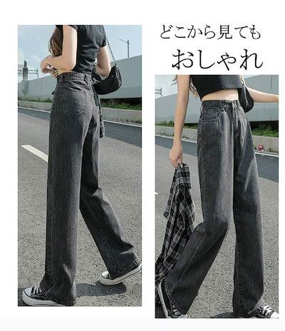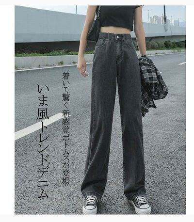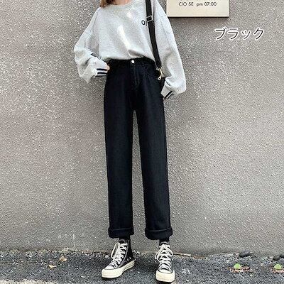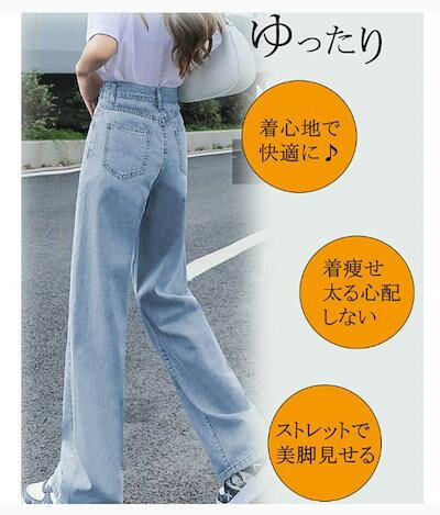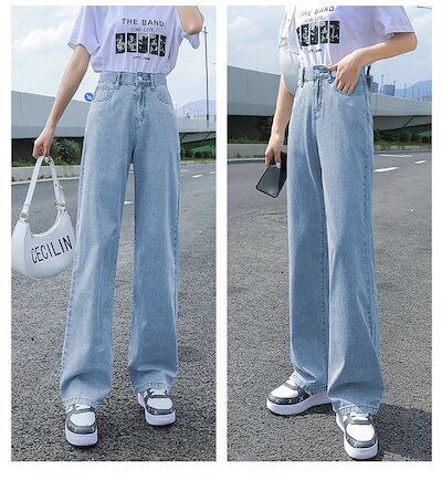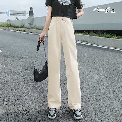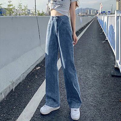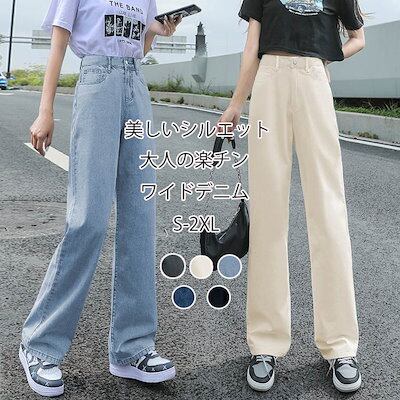 デニムパンツ レディース 大きいサイズ 春秋 ストレートパンツ 女の子 ハイウエスト 体型カバー ワイドパンツ 秋 ロング ポケットあり ロングパンツ ストレート ゆったり パンツ デニム ポケット付
