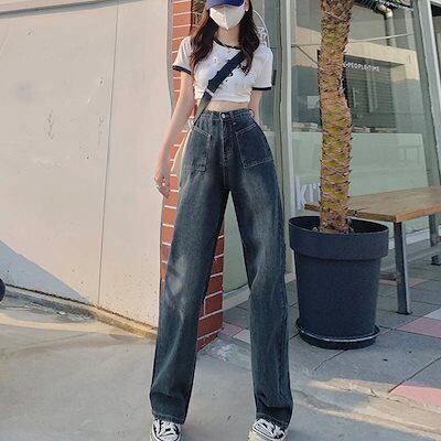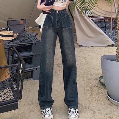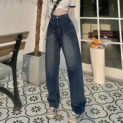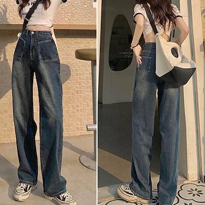 Qoo10NEW レトロ デニムワイドパンツ ハイウエスト レディース