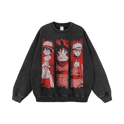 【急速出荷】日本のハイストリートアニメ漫画プリントのヘビーウォッシュ加工のメンズとレディース用長袖スウェットシャツ